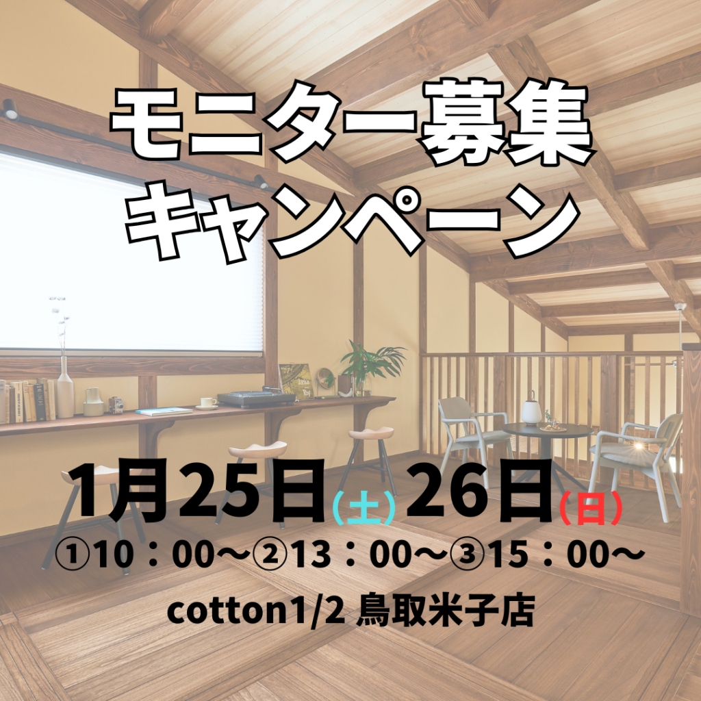 1月イベント情報 1月25日(土)26日(日) モニター募集キャンペーン開催 詳細は後日!